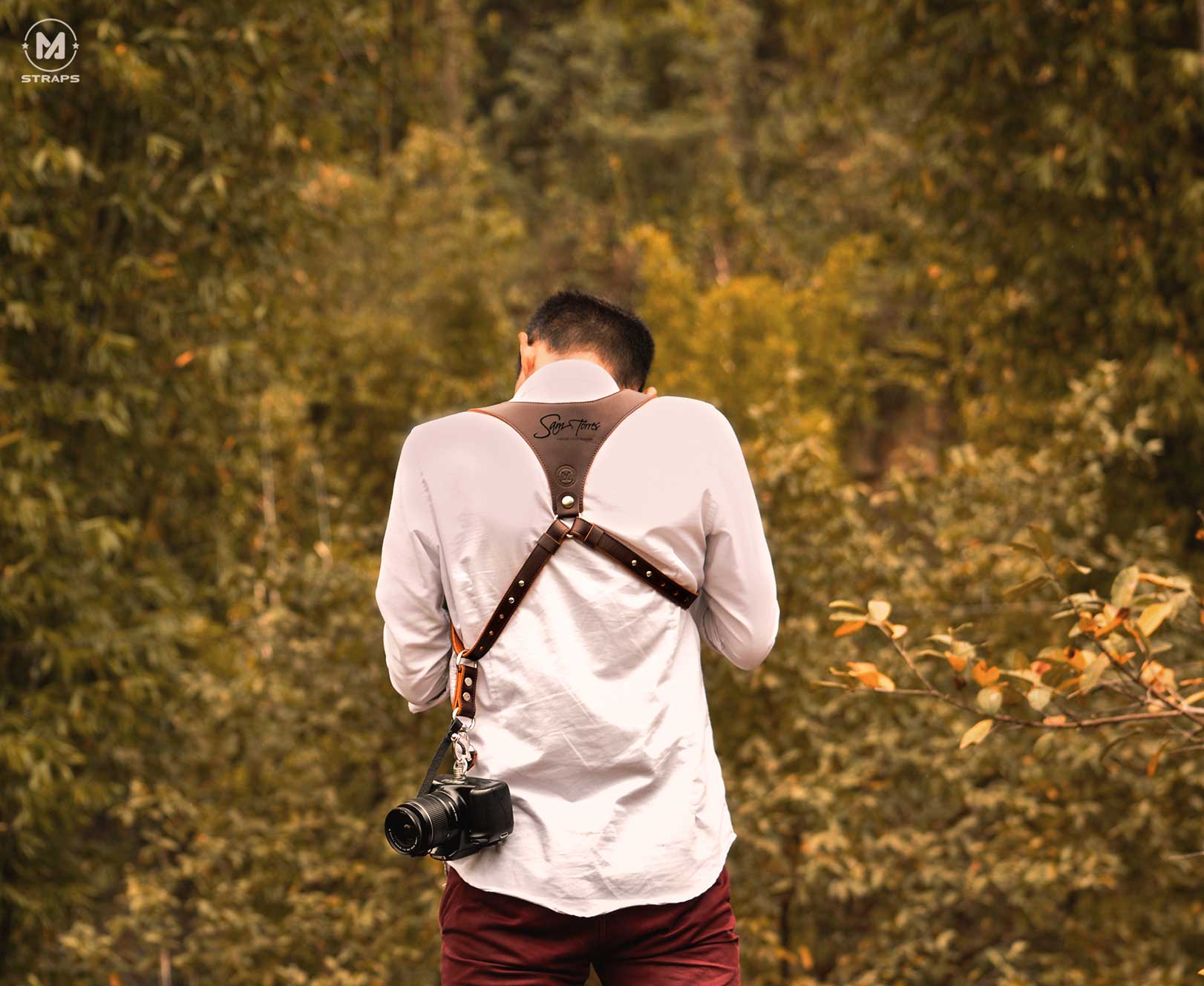 Nuestro modelo Fire Strap se caracteriza por amoldarse perfectamente a la espalda, equilibra el peso en los hombros de tal manera que garantiza mucha comodidad. Está hecho de piel genuina muy resistente pero a su vez flexible, forrado en piel lo que hace este strap doblemente resistente. Los herrajes son cromados y reforzados.